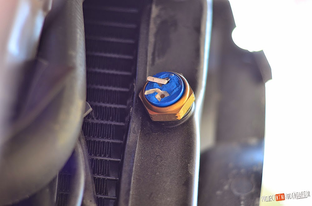 The fantastic day of roaming around the countryside and forest roads ended in tears when I managed to drop the bike and bust open the radiator. I was at and an end of a forest road when me and my friend decided not to push our luck and go riding on a what looked like a self made enduro training track. It looked gnarly at parts and we should've been heading home anyway. As I was turning the bike around at crawling speed I lost my balance and dropped the bike on it's right side. I immediately heard a hissing noise that told me I broke something badly. After I picked up the bike I noticed the radiator was leaking and the temp sensor on the right side had broken off. I had managed to drop the bike on a 3 inch thick tree stump that had hit the bike on it's most vulnerable spot, the radiator.